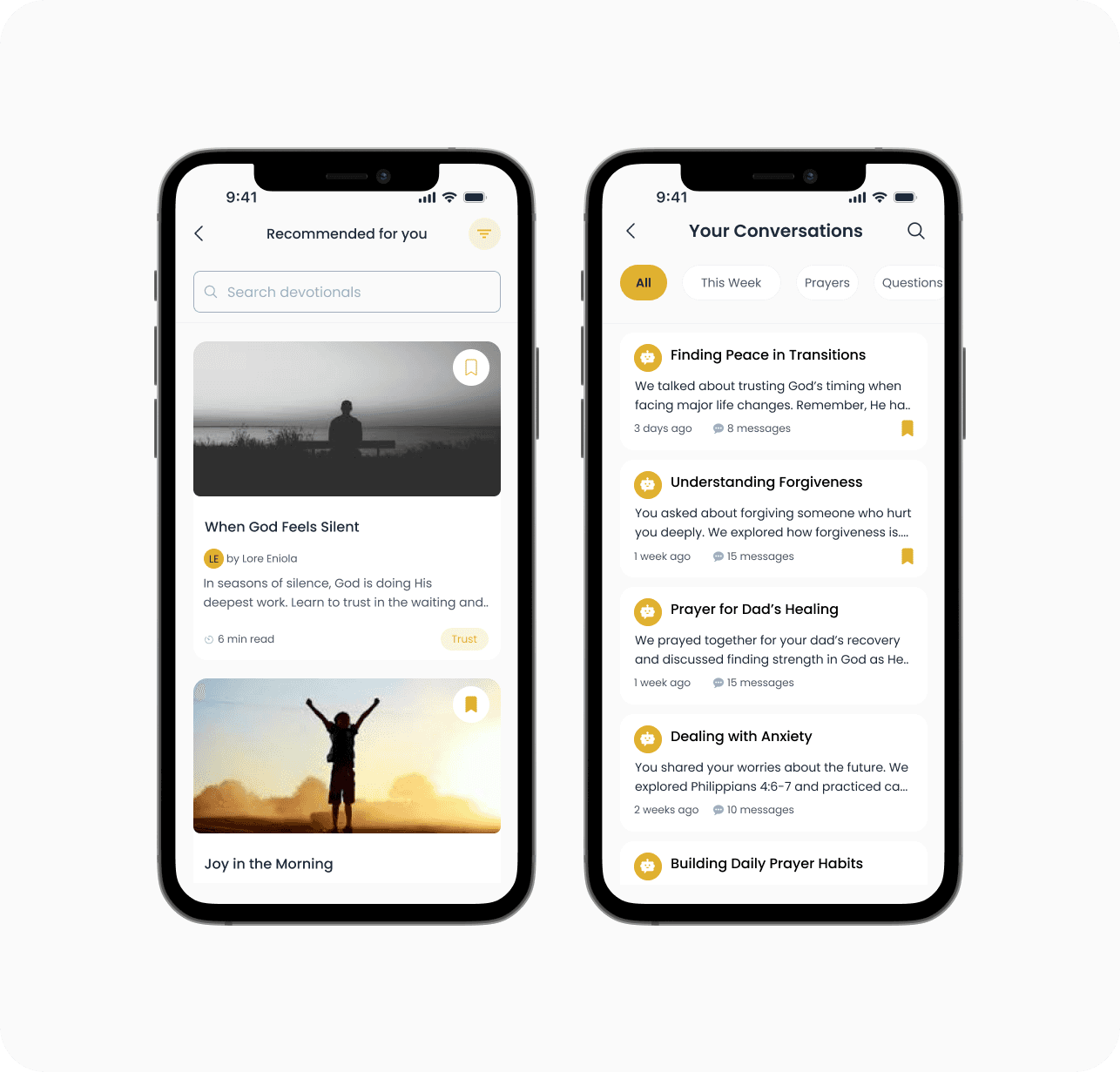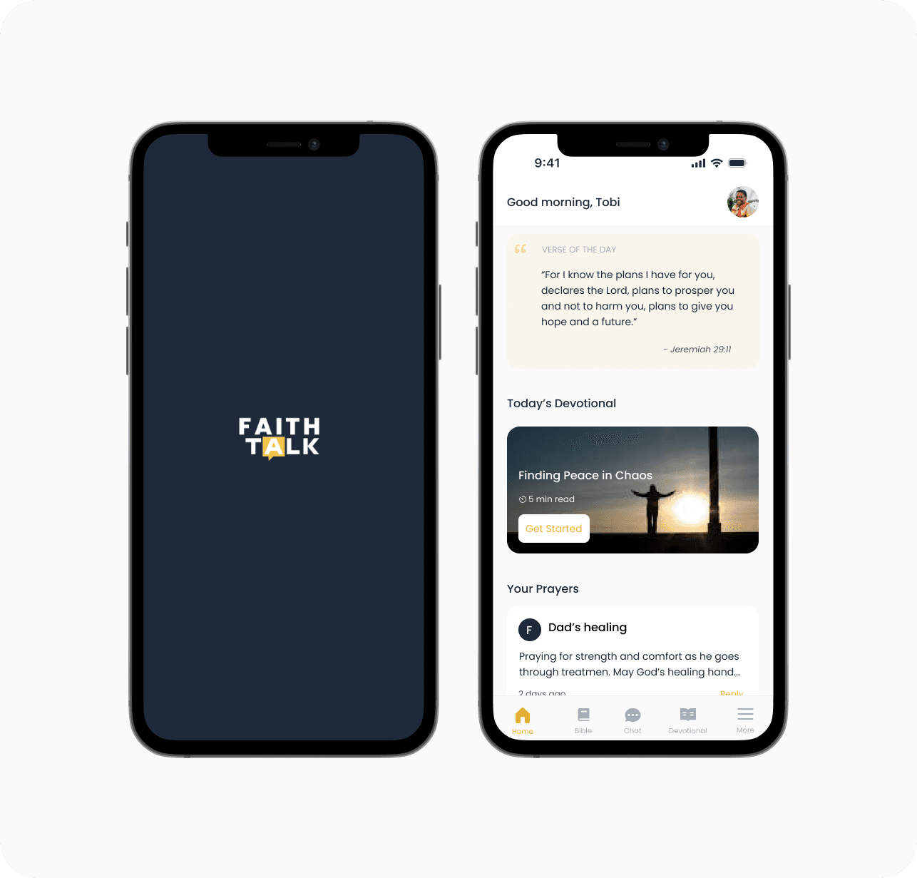 FaithTalk is a conversational Bible and devotional app designed to help Christians stay consistent in their spiritual growth. Instead of just reading scripture, users can chat, ask questions, get guided explanations, save verses, and track their journey all in one simple, warm, and modern interface.